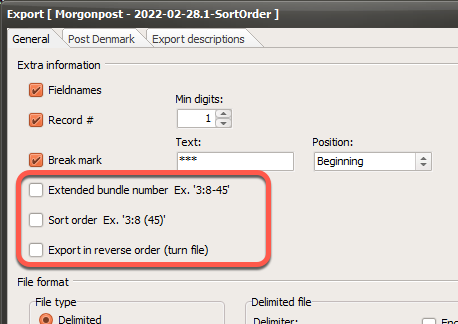 - It is now possible to export test files from PostSort by selecting 'Only for testing' in the dialog 'Postage optimization'. Note that only the first 200 addresses containing data.