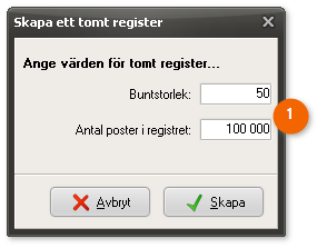 Ange buntstorlek samt hur många poster registret skall innehålla och klicka på Skapa.